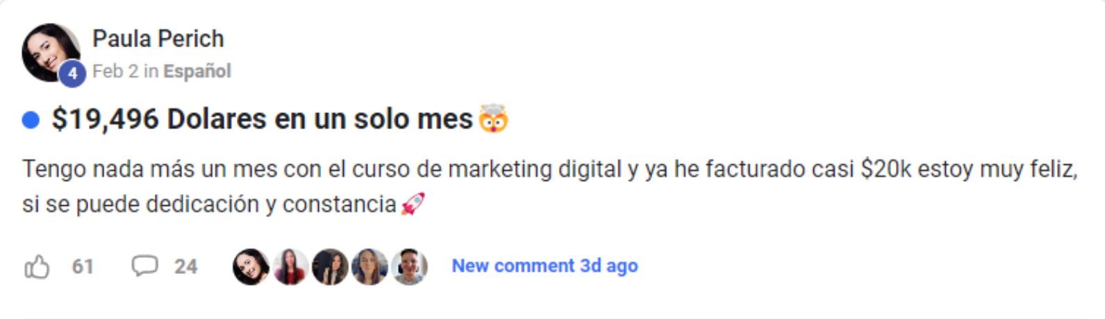 Además no está obligado a vender el curso, muchas personas lo están ocupando para hacer sus propios productos digitales y ofrecer sus habilidades, y lo interesante es que te permite adquirir los conocimientos y aplicarlos en el producto que quieras.