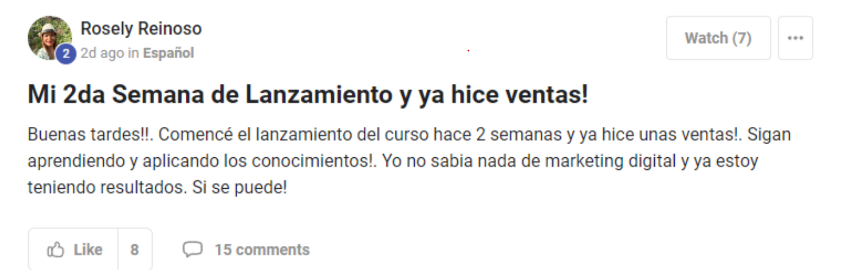 En mi caso, abrío una puerta enorme para además de revender el curso, sino también para poder monetizar mi conocimiento en áreas del despertar de consciencia, emprendimiento y mucho más, con mis propios productos digitales. Entendí que mi propósito es servir con mi experiencia y conocimiento y es por eso que lo encontré tan completo.