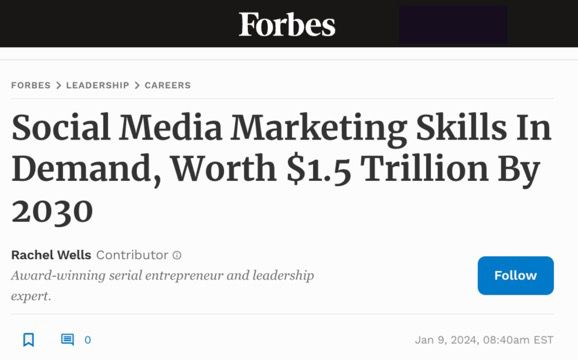 Según Forbes, El marketing Digital será una de las habilidades más demandadas y de crecimiento más rápido este 2024. Se proyecta que su valor alcance 1,5 Trillones hasta el 2030.